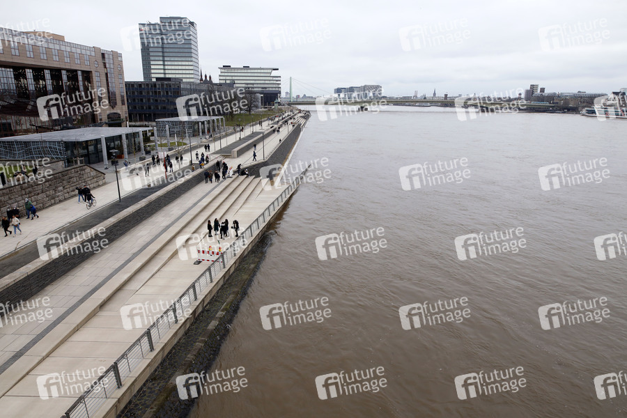 Rheinpegel, Fluss, Rhein, Pegelstand, Pegel, Hochwasser, Rheinboulevard, Pegelmarke, Hochwassermarke, Hochwasserwelle, Scheitelpunkt, Rhein-Pegel, Flussbett, Flut, Schifffahrt, Hochwasserschutz, Wasserstand, Mittelwasser, Tauwetter, Rheinschifffahrt, Rheinufer, Rhein-Ufer, Hochwasserschutzzentrale, Hochwasserwelle, Rheinuferpromenade, Pegel-Nullpunkt, Hochwasserlage, Hochwassermeldedienst, Hochwasserinformationsdienst, Wasserstände, Pegelstände, Wetterlage, ansteigendes Wasser, steigender Pegel, Rheinufer, Schmelzwasser, Wetter, Symbolbild, Symbolfoto