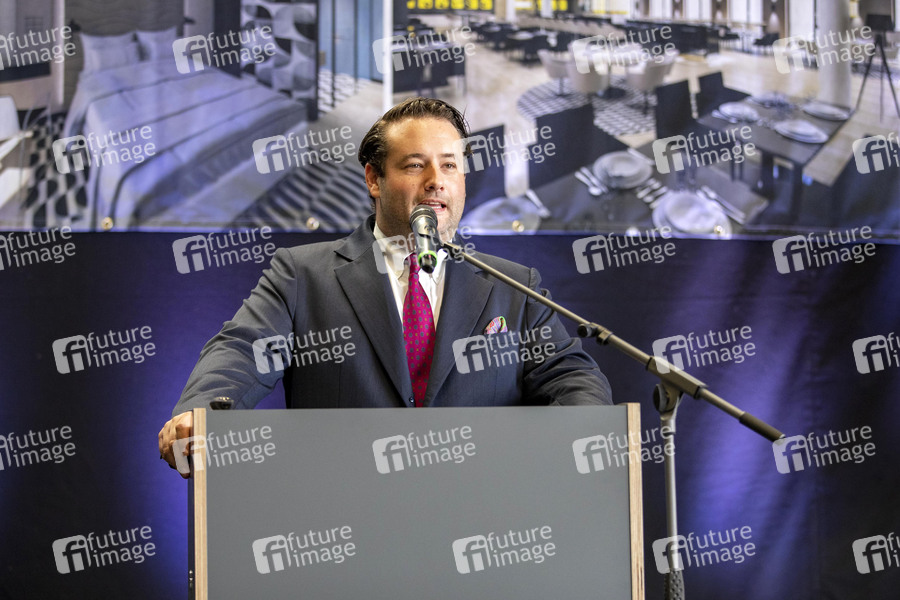 Sven J. Köllmann beim Richtfest des neuen Hotels an der Messe Erfurt. Die Légère Hotelgruppe übernimmt die Leitung. Erfurt, 16.07.2021