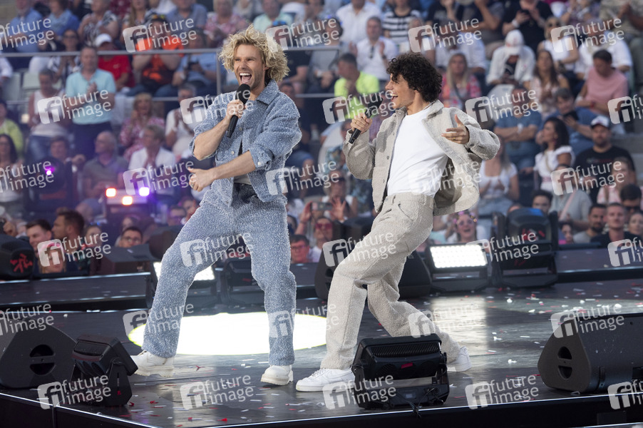 Matt & Sem in der TV-Show 'Schlagerbooom Open Air 2025 - Die Berge leuchten!' live aus dem Stadion Kitzbühel. Kitzbühel, 21.06.2025