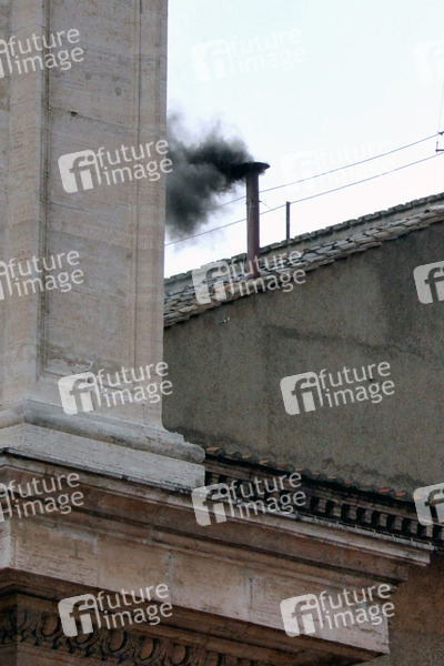 Schwarzer Rauch steigt aus dem Schornstein der Sixtinischen Kapelle, der anzeigt, dass die Kardinäle noch zu keinem Ergebnis bei ihrer Papstwahl gekommen sind. Vatikanstadt, 13.03.2013