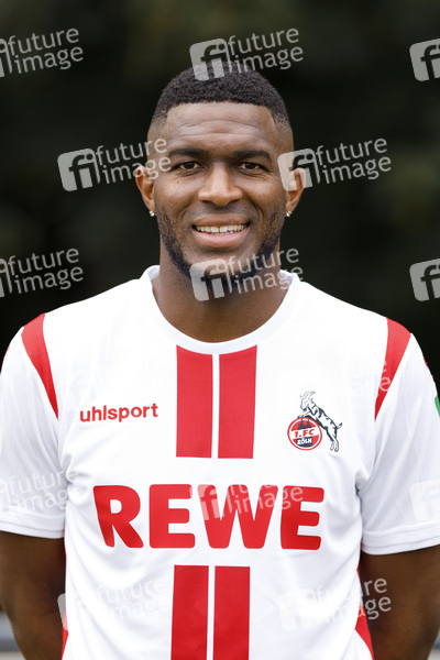 Anthony Modeste beim Fototermin im Rahmen des Media Day des 1. FC Köln mit den neuen Trikots in der Saison 2020/2021 am Geißbockheim. Köln, 14.08.2020