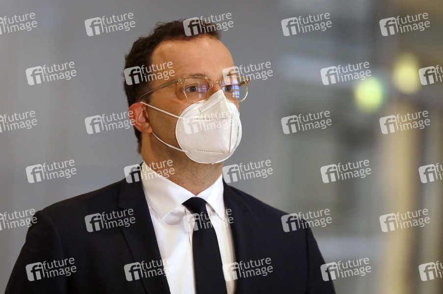 Jens Spahn bei einem Pressestatement im Rahmen der 204. Sitzung des Deutschen Bundestages im Reichstagsgebäude. Berlin, 14.01.2021