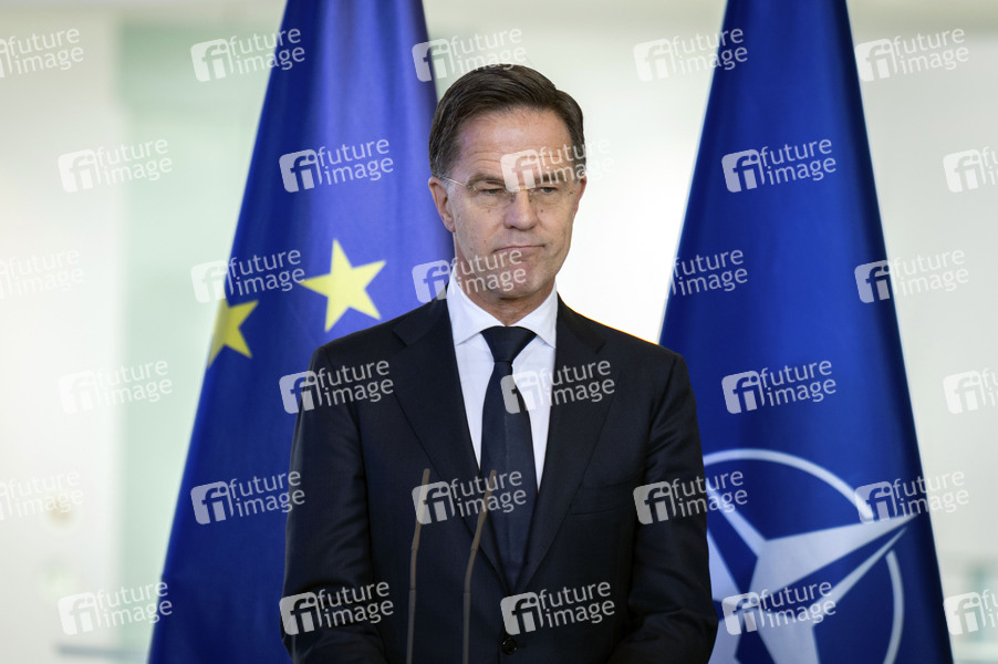 Mark Rutte beim Empfang des NATO-Generalsekretärs zu einem gemeinsamen Gespräch mit dem Bundeskanzler mit anschließendem Pressestatement im Bundeskanzleramt. Berlin, 11.12.2025