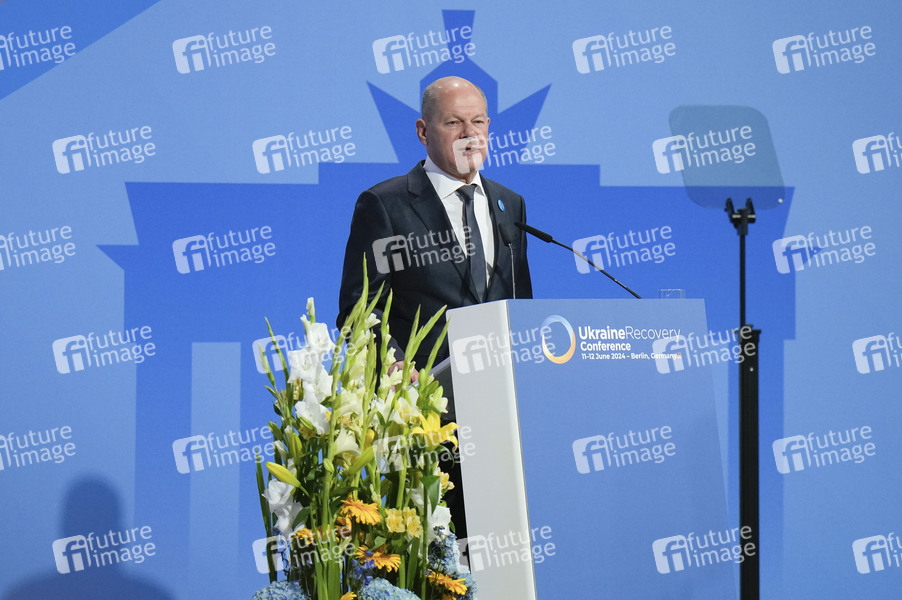 Olaf Scholz bei der Eröffnung der Ukraine Recovery Conference 2024 unter dem Motto 'United in Defense. United in Recovery. Stronger together.', auf dem Messegelände. Berlin, 11.06.2024
