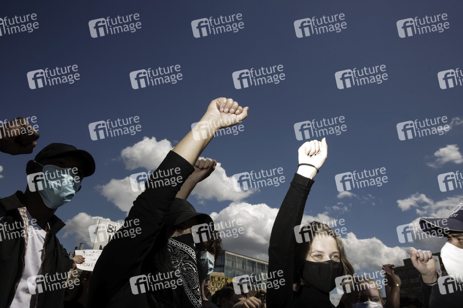 Demonstranten bei der 'Silent Demo' gegen Rassismus am Alexanderplatz. Berlin, 06.06.2020