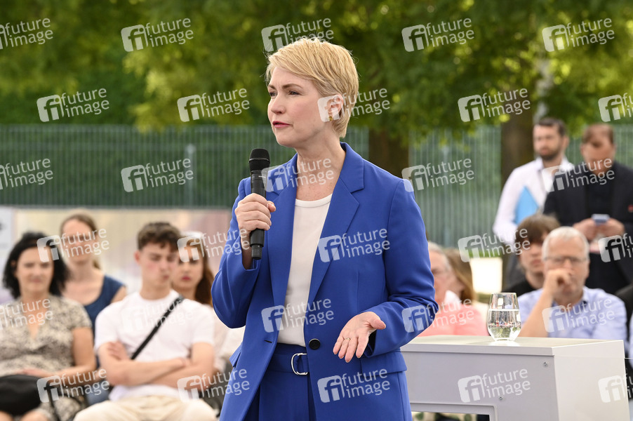 Manuela Schwesig auf dem Demokratiefest zu 75 Jahren Grundgesetz auf der Bühne Dialogforum zwischen Kanzleramt und den Deutschen Bundestag. Berlin, 24.05.2024