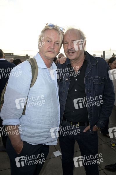 Detlev Buck und Leander Haußmann beim Eröffnungsempfang der UFA Filmnächte 2024 auf der Dachterrasse der Bertelsmann Repräsentanz. Berlin, 21.08.2024