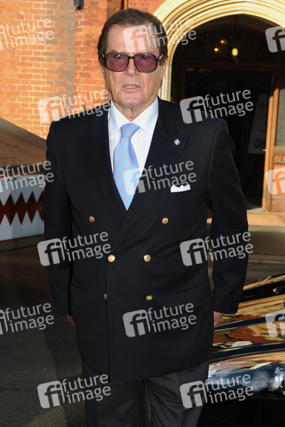 Pressetermin mit Sir Roger Moore in Bletchley Park, Bedfordshire anlässlich der Veröffentlichung von sechs James Bond-Filmen auf Blu-Ray