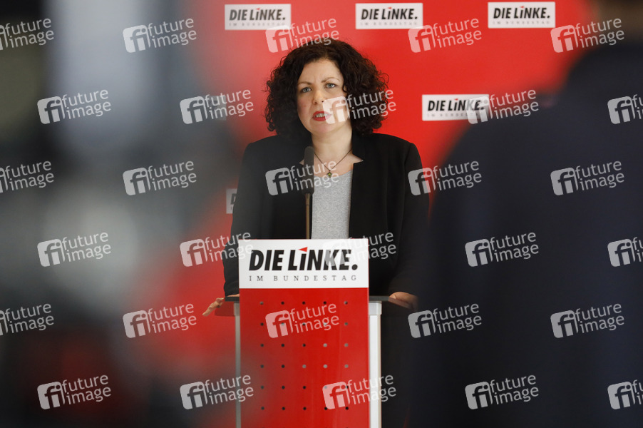 Politik, Pressekonferenz, PK, Reichstag, Sitzung, Regierung, Deutscher Bundestag, Demokratie, Abgeordnete, Parlament, Parlamentsgebäude, Bundesregierung, Volksvertreter, MdB, Mitglied des Bundestages, Politikerin, Fraktionsvorsitzende der Partei Die Linke