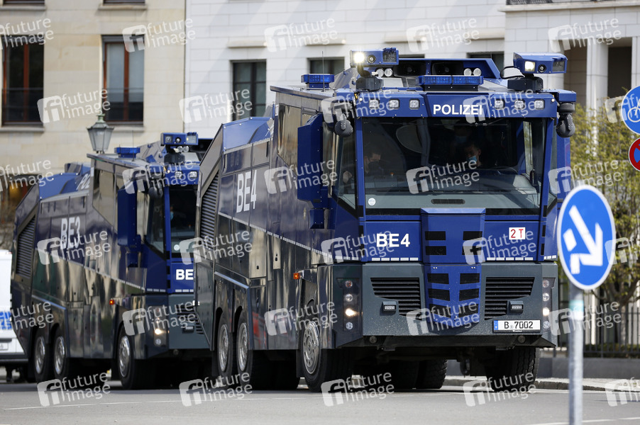 Protest, Demo, Demonstration, Corona-Maßnahmen-Kritiker, Corona-Hygieneregeln, Distanz, Mund-Nasen-Schutz, Protestierende, Demonstranten, Polizei, Polizisten, Gegner der Corona-Maßnahmen, Infektionsschutzgesetz, Corona-Notbremse, Eindämmung der dritten Pandemiewelle, Coronaleugner, Teilnehmer, Corona-Regeln, Pandemie, Corona-Demo, Coronademo, Querdenker