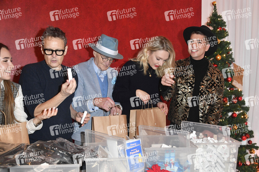 Rolf Scheider, Günther Krabbenhöft, Victoria Jancke und Maximilian Seitz bei der Veranstaltung 'Strassenfeger x Maximilian Seitz - Weihnachtsgeschenke einpacken für Obdachlose und Bedürftige' im Hotel Q!. Berlin, 08.12.2021