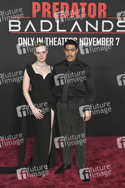 Elle Fanning und Dimitrius Schuster-Koloamatangi bei der Premiere des Kinofilms 'Predator: Badlands' im TCL Chinese Theater. Los Angeles, 03.11.2025