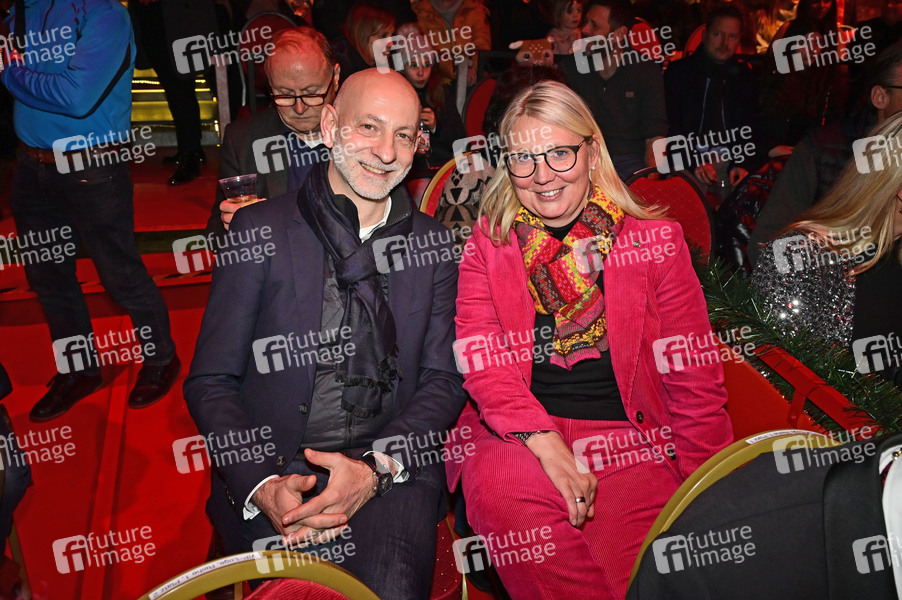 Ralph Schreiber und Sandra Gockel bei der Premiere des 27. Dresdner Weihnachts-Circus an der Washingtonstraße. Dresden, 13.12.2024