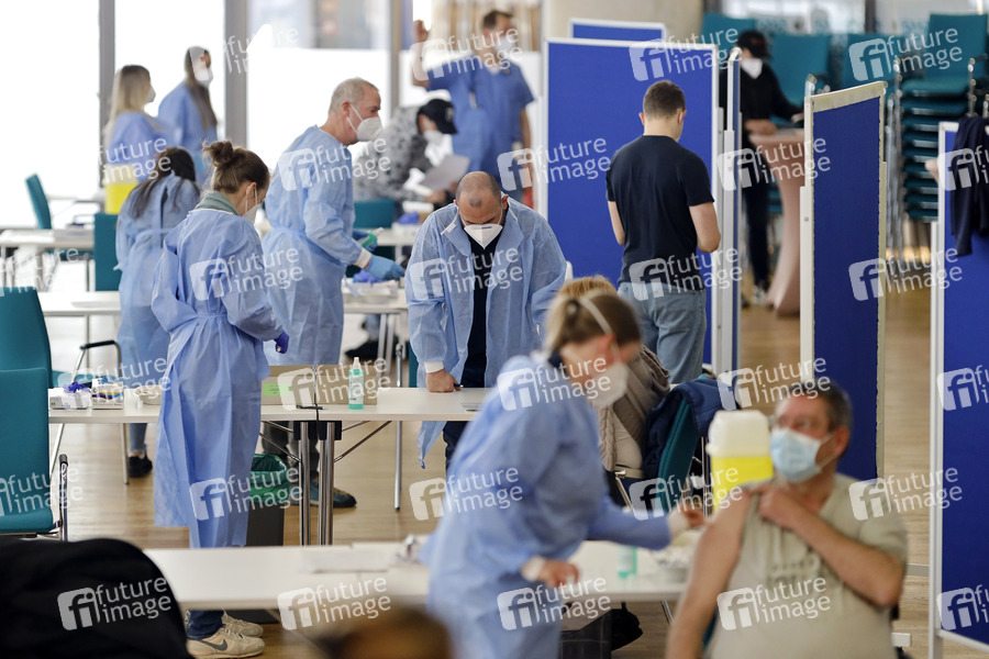 In der Ehrenfelder Ditib Moschee können sich Kölner am Wochenende gegen das Coronavirus impfen lassen. Zur Verfügung stehen Dosen des Impfstoffes von Astrazeneca sowie Johnson & Johnson. Köln, 08.05.2021