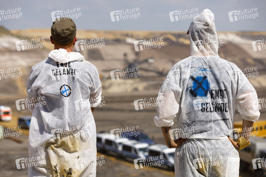 Erderwärmung, Klimagase, Kohlegegner, Klimaaktivisten, Klima-Notstand, Klimanotstand, Klimakrise, Klima-Krise, Energiewende, CO2, Treibhausgase, Klimaschutz, Schulstreiks für das Klima, Klima-Demonstration, Klima-Demo, Klimademo, Fridays for Future, Ende Gelände, Demonstration, Demonstranten, Demo, Kundgebung, Kohlekraft, RWE, Protest, Aktion, Banner, Parolen, Politik, Klimaschutz, Klimakrise, Klimawandel, CO2-Ausstoß, CO2-Steuer, Kohleausstieg, Fossile Brennstoffe, Klimapolitik, Hochneukirch, Keyenberg, Jüchen, Erkelenz, Grevenbroich, Tagebau, Garzweiler II, Braunkohlerevier, Climate Change, Jugendbewegung, Aktivismus, Climate Justice, Polizeikette, Polizei, Grubensturm, Demonstrationszug, Braunkohlegegner, Grubenrand, Aktivisten, Goldener Finger, Polizei, Polizeikräfte, Aktionsbündnis, Neurath, Kohle, Kohleversorgung, Braunkohle, Steinkohle, Symbolbild, Symbolfoto