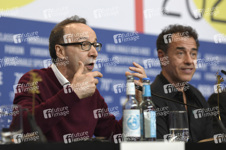 Roberto Benigni und Matteo Garrone bei der Pressekonferenz zu 'Pinocchio' auf der Berlinale 2020 / 70. Internationale Filmfestspiele Berlin im Hotel Grand Hyatt. Berlin, 23.02.2020