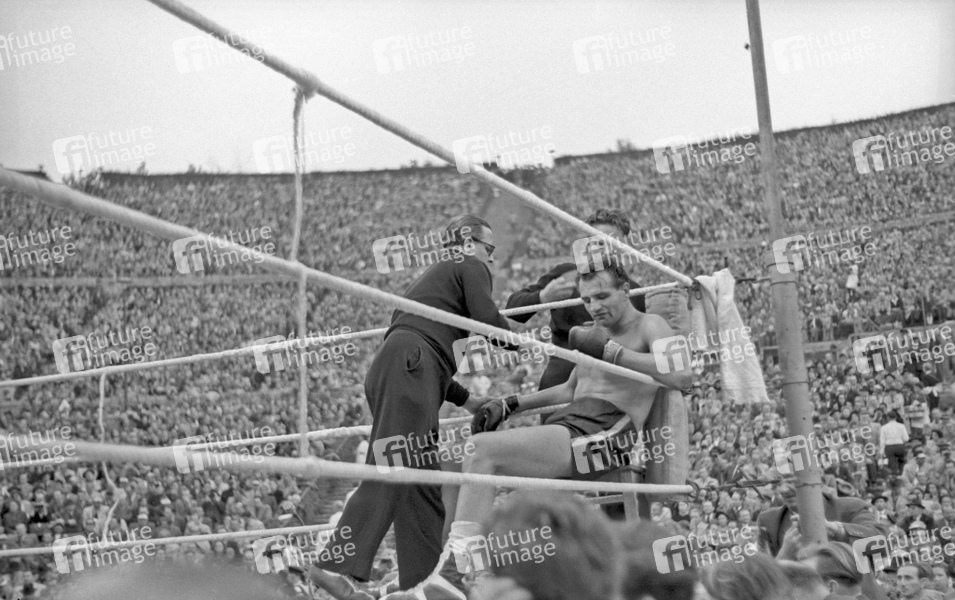 Europameisterschaftskampf im Box-Schwergewicht Jack Gardner (England) gegen Hein ten Hoff (Deutschland) in der Berliner Waldbühne