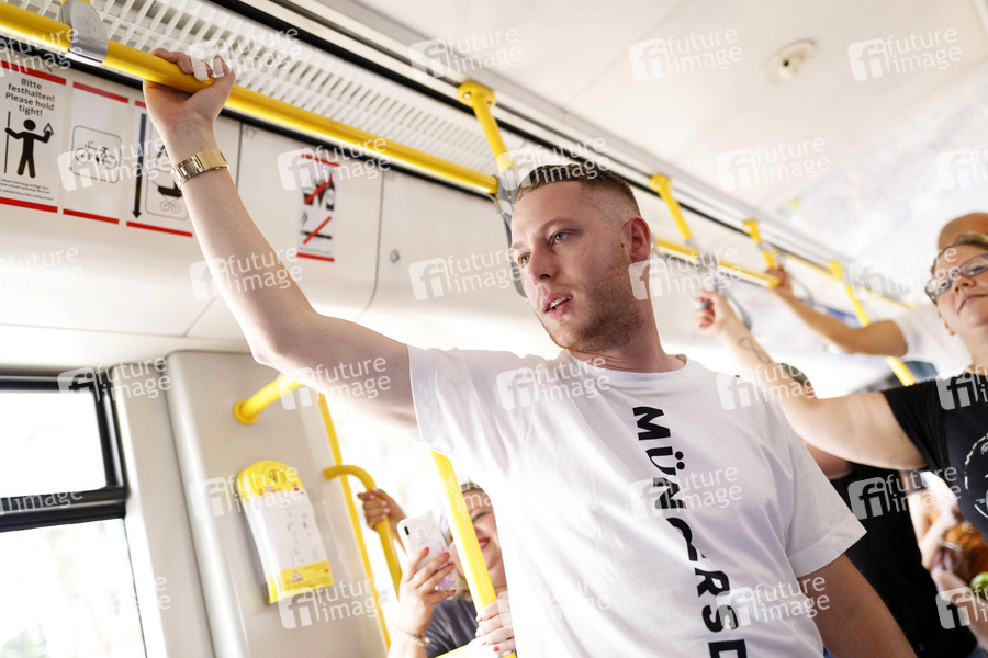 Mo-Torres stellt seinen neuen Song 'Müngersdorf' in einer KVB-Bahn der Linie 1 vor. Köln, 26.07.2019