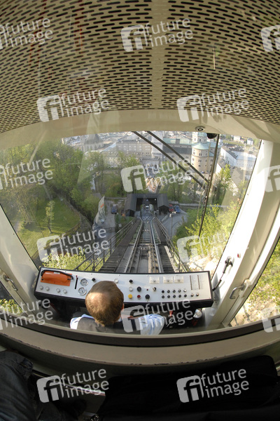 Älteste in Betrieb befindliche Standseilbahn Österreichs, Länge: ca. 119 m, Höhenunterschied: 102 m, Größte Steigung: 62 %, Spurweite: 1040mm, Seildurchmesser: 25 mm, System: 1-spurig mit Ausweiche