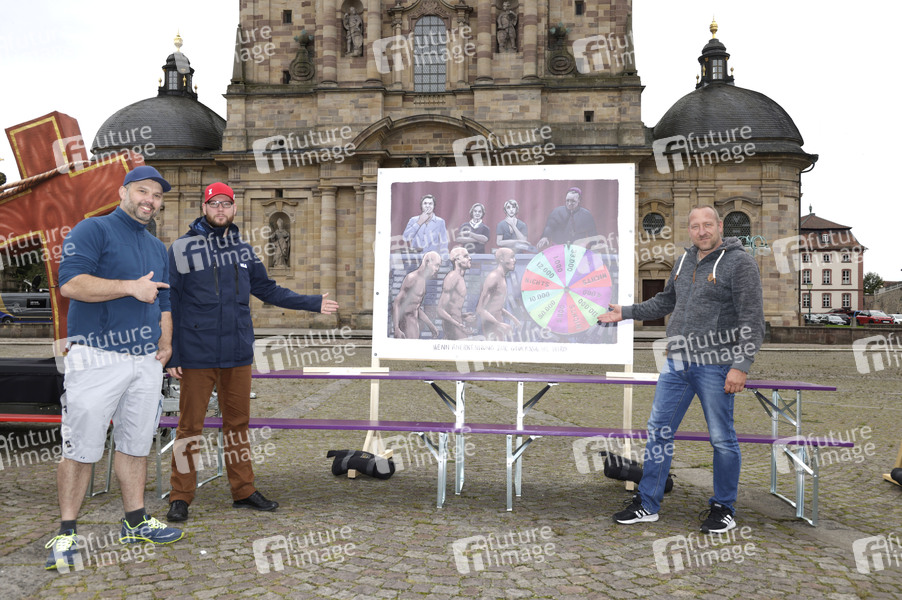 David Farago (Aktionsleiter der Giordano-Bruno-Stiftung), Maximilian Stellenhaus (Teammitglied der Giordano-Stiftung) und Jens Windel (Betroffeneninitiative-Hildesheim) bei einer Protestaktion der Giordano-Bruno-Stiftung und der Betroffeneninitiative-Hildesheim bei der Herbst-Vollversammlung der Deutschen Bischofskonferenz auf dem Vorplatz des Doms zu Fulda. Fulda 20.09.2021