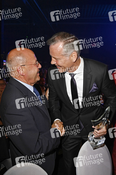 Gregor Gysi und Henry Maske bei der Verleihung der Goldenen Sonne 2021 während der Sonnenklar.TV Gala im Wunderland Kalkar. Kalkar, 28.08.2021