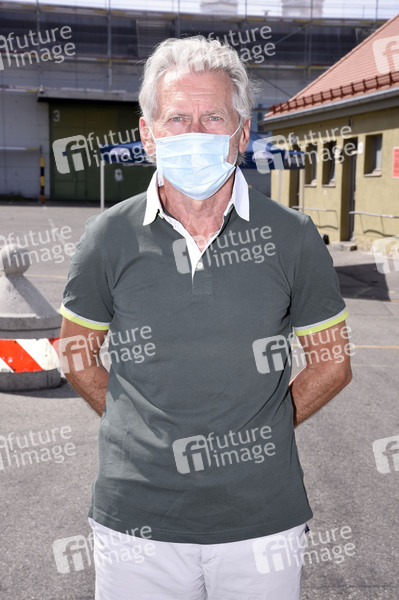 Paul Breitner bei der Übergabe von Schulstart-Spenden der Firma Amazon an 2300 sozial benachteiligte Kinder an der Münchner Tafel in der Großmarkthalle. München, 28.08.2020