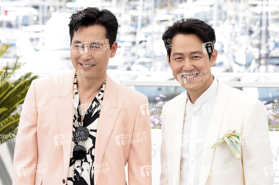 Jung Woo-sung und Lee Jung-jae beim Photocall zum Kinofilm 'Hunt / Heon-teu' auf dem Festival de Cannes 2022 / 75. Internationale Filmfestspiele von Cannes im Palais des Festivals. Cannes, 19.05.2022