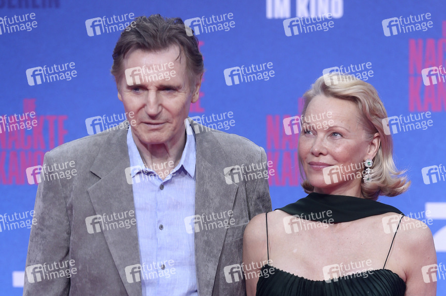 Liam Neeson und Pamela Anderson bei der Premiere des Kinofilms 'Die nackte Kanone / The Naked Gun' im Kino UCI Luxe East Side Gallery. Berlin, 24.07.2025