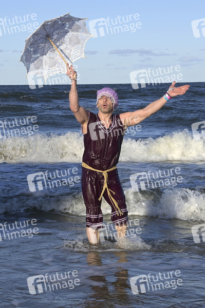 Hendrik Duryn beim Baltic Lights 2023 Charity-Hunderennen zu Gunsten der Welthungerhilfe zwischen der Seebrücke Ahlbeck und der Seebrücke Heringsdorf. Heringsdorf, 04.03.2023