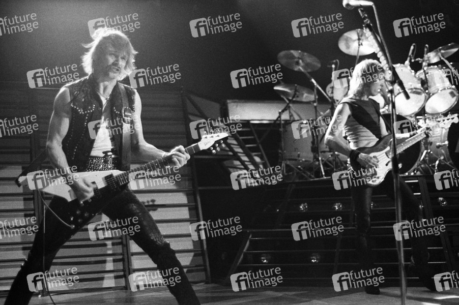 Rudolf Schenker und Francis Buchholz von den Scorpions live im Hammersmith Odeon. London, 01.02.1984