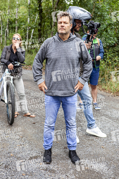 Robert Habeck bei einer Fahrradtour im Rahmen einer Wahlkampfveranstaltung von Bündnis 90/Die Grünen zur Landtagswahl in Sachsen 2019 durchs Dubringer Moor nach Wittichenau und Spohla. Hoyerswerda, 19.08.2019
