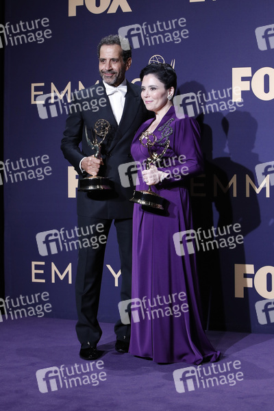 Tony Shaloub und Alex Borstein mit den Emmys für die besten Nebendarsteller in einer Comedy Serie in 'The Marvelous Mrs. Maisel' bei der Verleihung der 71. Primetime-Emmy-Verleihung 2019 im Microsoft Theater. Los Angeles, 22.09.2019