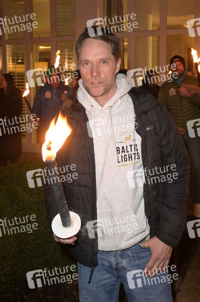 Matthias Schloo beim offiziellen Opening der Baltic Lights 2024 mit Fackellauf und Lagerfeuer an der Alex Strandbar. Heringsdorf, 01.03.2024
