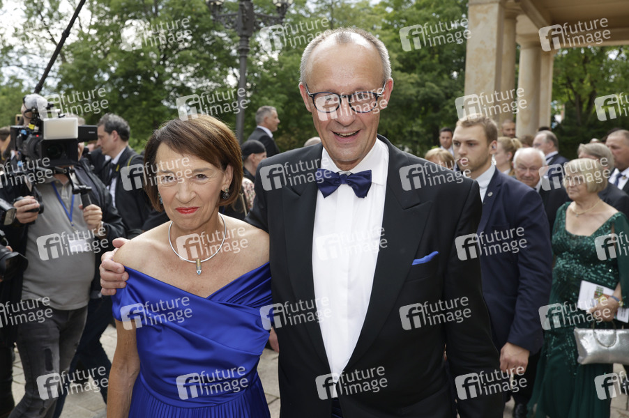 Friedrich Merz mit Ehefrau Charlotte Merz bei der Eröffnung der 113. Richard-Wagner-Festspiele 2025 mit der Neuinszenierung von 'Die Meistersinger von Nürnberg' im Bayreuther Festspielhaus. Bayreuth, 25.07.2025