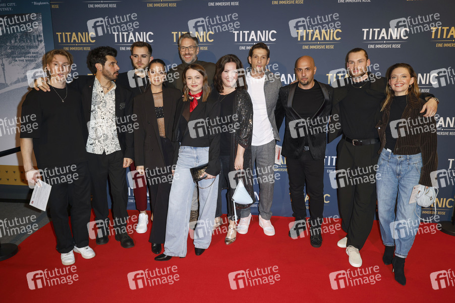 Leif Lunburg, Ricardo Angelini, Gast, Shaolyn Fernandez, Julia Wiedemann, Stefan Bockelmann, Sarah Victoria Schalow, Abbassi, Igor Dolgatschew, Gast, Vitali Huk, Amrei Haardt und Ania Niedieck bei der Eröffnung der Ausstellung 'Titanic: Eine Immersive Reise' im ehemaligen Autohaus Oskar-Jäger-Str. 99. Köln, 06.02.2025