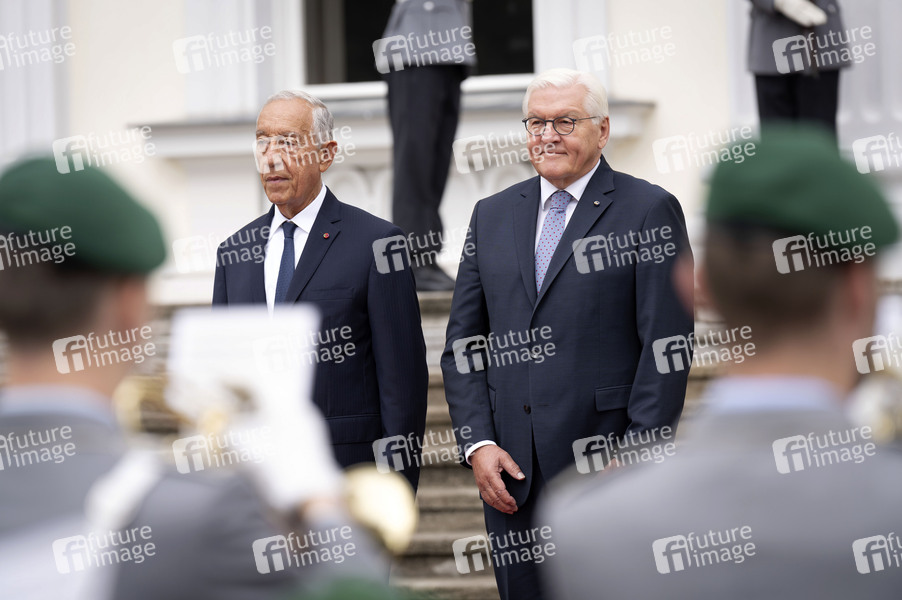 Marcelo Rebelo de Sousa und Frank-Walter Steinmeier bei der Begrüßung des Präsidenten der Portugiesischen Republik mit militärischen Ehren und zum gemeinsamen Gespräch im Schloss Bellevue. Berlin, 12.09.2025