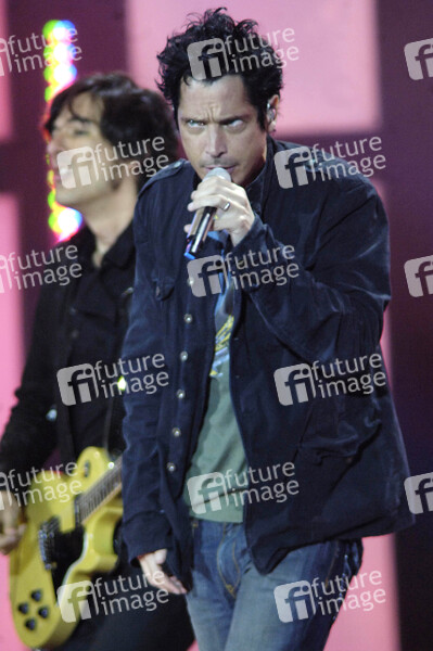Chris Cornell auf den Live Earth Konzert in der Hamburger HSH-Norbank-Arena. Die weltumspannende Konzertreihe fand auf sieben Kontinenten insgesamt 24 Stunden lang statt. Ins Leben gerufen vom ehemaligen US-Vizepräsidenten und Umweltaktivisten Al Gore und vom Musikproduzenten Kevin Wall, die damit auf die Klimaerwärmung aufmerksam machen wollten.