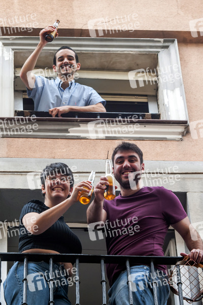 Nachbarschafts-Balkonparty in der Calle de las Maldonadas - Tag 35 seit Verhängung des Ausnahmezustands durch die spanische Regierung wegen der Coronakrise. Madrid, 18.04.2020