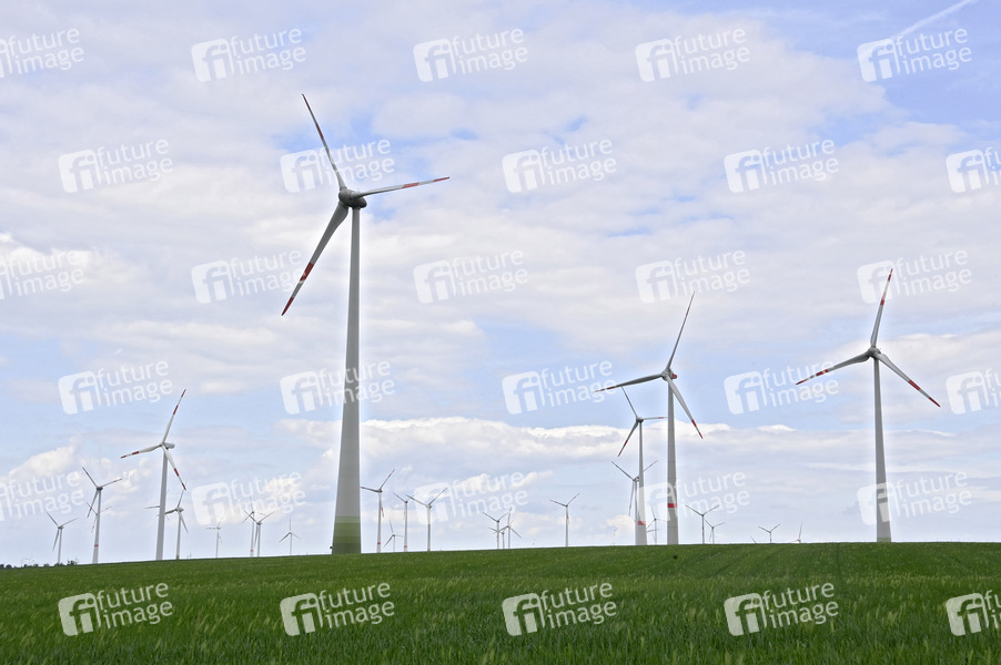 Mit ihrer Mehrheit beschlossen die Regierungsfraktionen im Mai den Ausbau der erneuerbaren Energien. Danach sollen bis 2030 mindestens 11,5 Gigawatt statt bisher 10,5 Gigawatt aus Windenergie produziert werden, was etwa 250 neuen Windrädern entspräche. Im Bild ein Windpark bei Prittitz, 25.05.2022