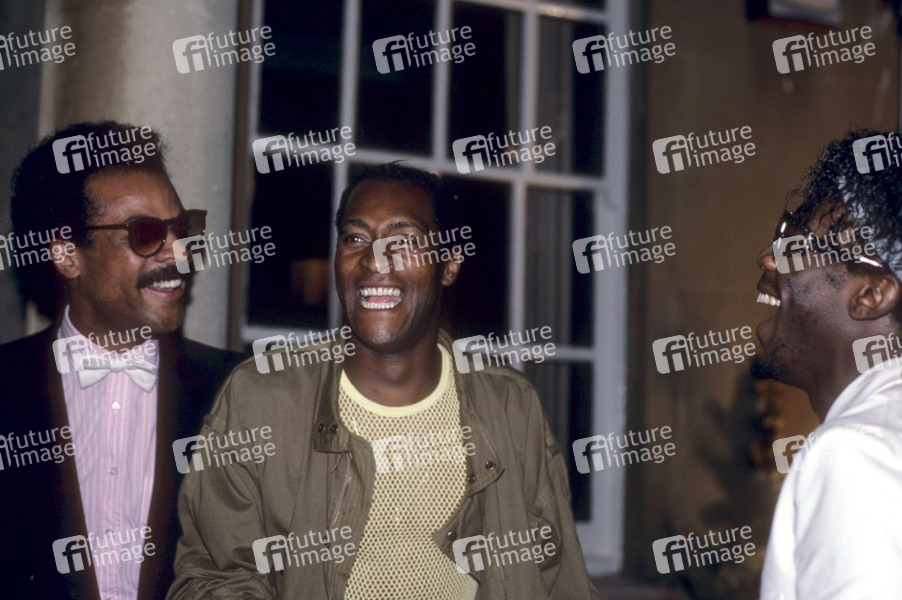 Gast mit Errol Kennedy und Ashley Ingram von Imagination bei der Party zum Release der Thompson Twins LP 'Into the Gap' im Stocks Club. Aldbury, 26.06.1984