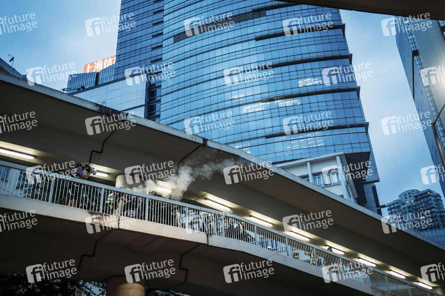 Protest gegen Regierung, Hong Kong, Politik, Aktion, Demonstration, Demonstranten, Unruhen, Straßenkämpfe, Wasserwerfer, Tränengas, Demonstrationsverbot Polizei