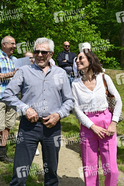 Gojko Mitic mit Freundin Julia bei der offiziellen Einweihung einer Sandstein-Stele in der Nähe des Originaldrehortes des Filmes 'Die Söhne der großen Bärin' im Kurort Rathen. Rathen, 19.05.2024