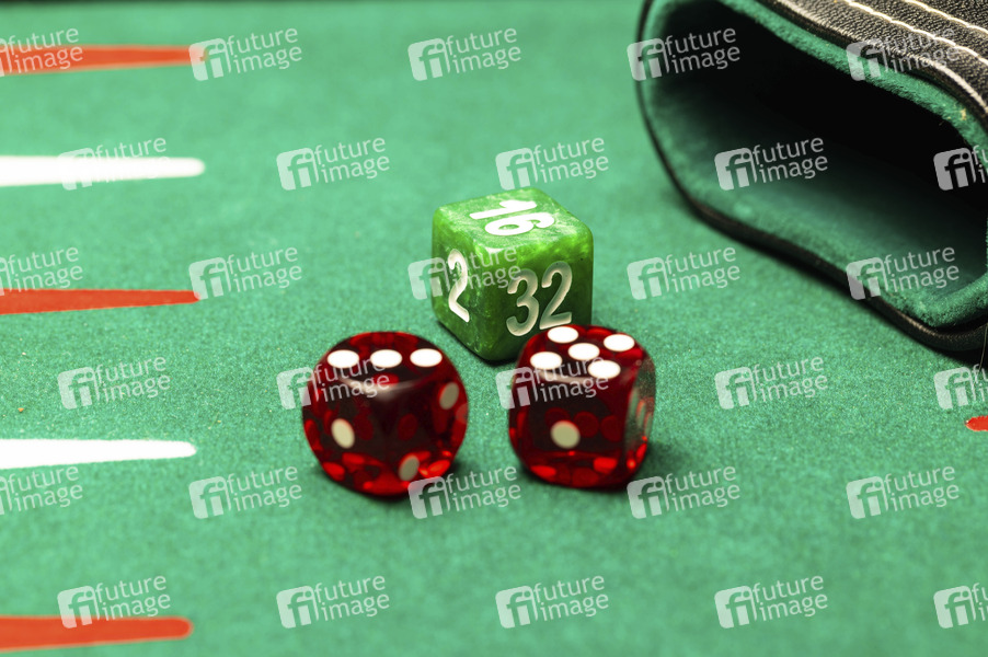 Brettspiel, Würfelspiel, Strategiespiel, Glücksspiel, Würfel, Präzisionswürfel, Spiel, spielen, Spielsucht, Würfelbecher, Verdopplungswürfel, Dopplerwürfel, Symbolbild, Themembild