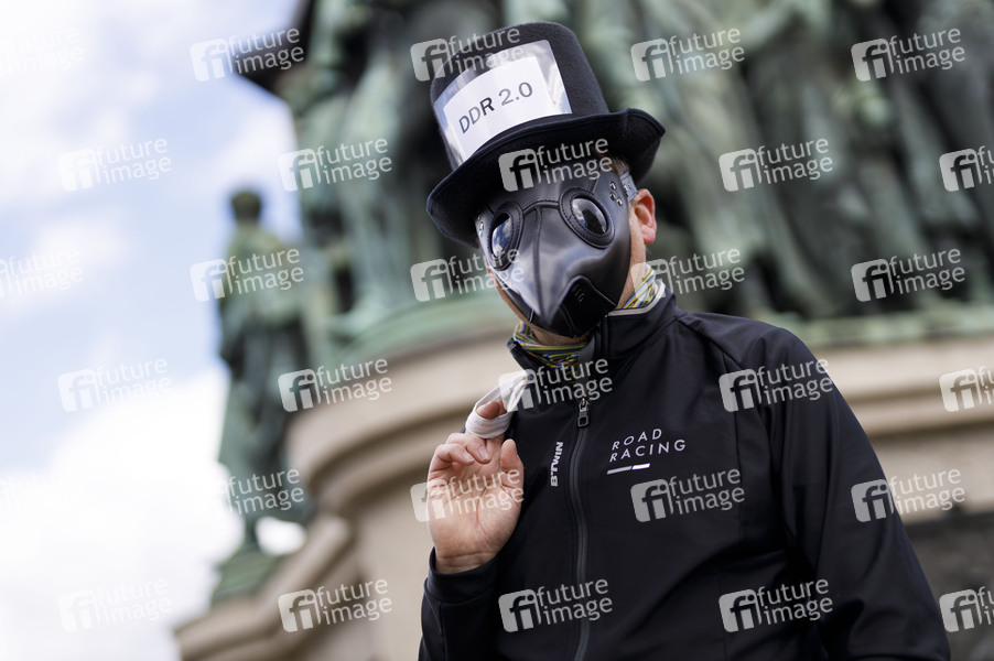 Corona-Maßnahmen, Überwachung, DDR 2.0, Pest, Pestmaske, Seuchenschutz, Demo, Demonstranten, Demonstration, Erster Mai, Feiertag, Maidemo, Mai-Demo, Politik, Protestplakat, Tag der Arbeit, Corona, Sars-CoV-2, Covid-19, Coronavirus, Coronaviren, Corona-Virus, Coronakrise, Corona-Krise, Corona-Pandemie, Coronamaßnahmen, Corona-Schutz, flatten the curve, Ausnahmesituation, Atemschutz, Atemschutzmaske, Virenschutz, Schutzmaske, Schutzmasken, Atemschutzmasken, Maske, Masken, Mundschutz, Mund-Schutz, Mundschutzpflicht, Maskenpflicht, Mundschutz-Pflicht, Mund-Nase-Schutz, Mund-Nasen-Schutz, MNS, Vermummung, Kontaktverbot, Versammlungsverbot, Mindestabstand, Social Distancing, Kontakt verboten, Ausgangsbeschränkung, Abstand, Abstandhalten, Abstandsregel, Abstandsregeln, Allgemeinverfügung
