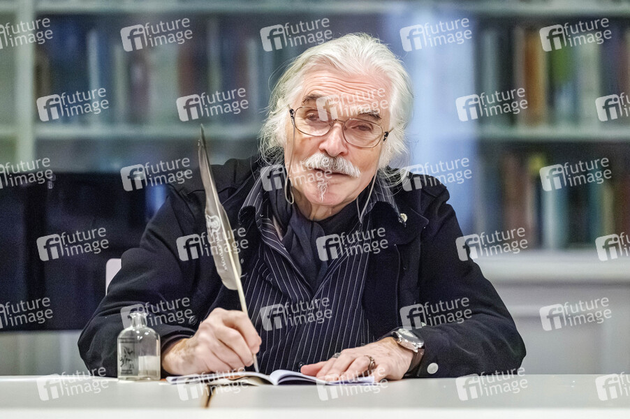 Leo Litz bei einer Lesung aus seinem Buch 'Wie Väterchen Frost dem Osterhasen begegnete' im Heinrich-Heine-Institut. Düsseldorf, 20.12.2025
