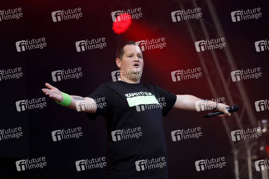 Sabbotage bei seinem Auftritt beim Konzert von Mia Julia im Kulturgarten in der Bonner Rheinaue. Das Bonn Live Kulturgarten Open Air Festival 2020 ist Europas erstes Open Air Festival unter Corona-Auflagen wegen der Covid-19 Pandemie. Bonn, 08.08.2020