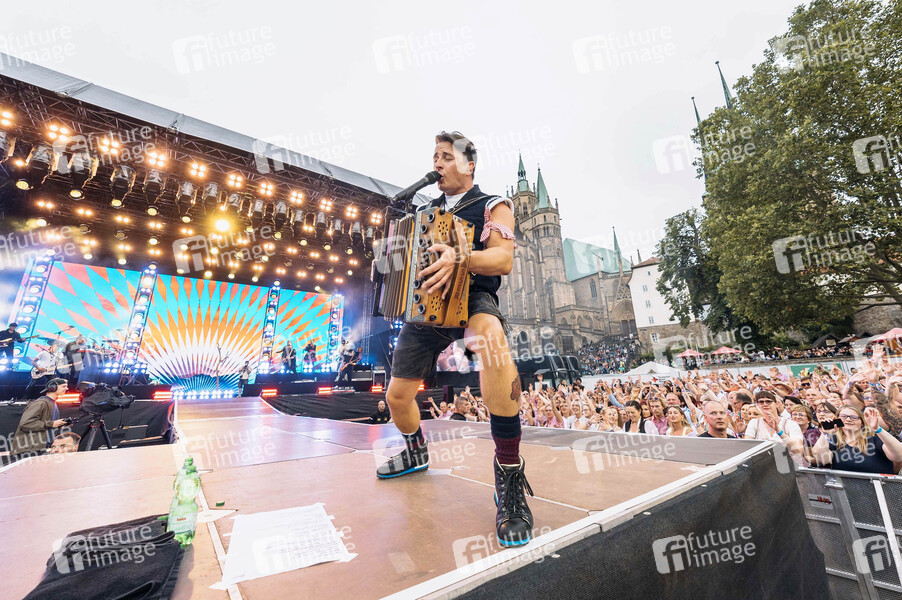 Andreas Gabalier live bei einem Konzert der 'Ein Hulapalu auf uns'-Tour auf dem Domplatz. Erfurt, 11.07.2025
