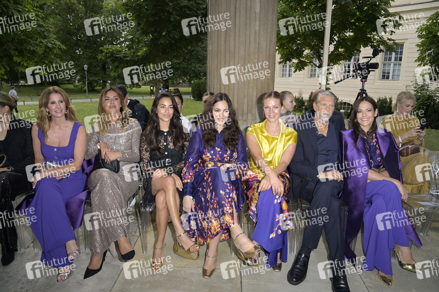Mareile Höppner, Jana Azizi, Nilam Farooq, Jessica Schwarz, Kai Wiesinger und Bettina Zimmermann bei der Marc Cain Fashion Show 'Pure Radiance - Frühjahr/Sommer 2025' auf der Berlin Fashion Week S/S 2025 in der Kolonnade mit Triumphtor am Neuen Palais. Potsdam, 02.07.2024