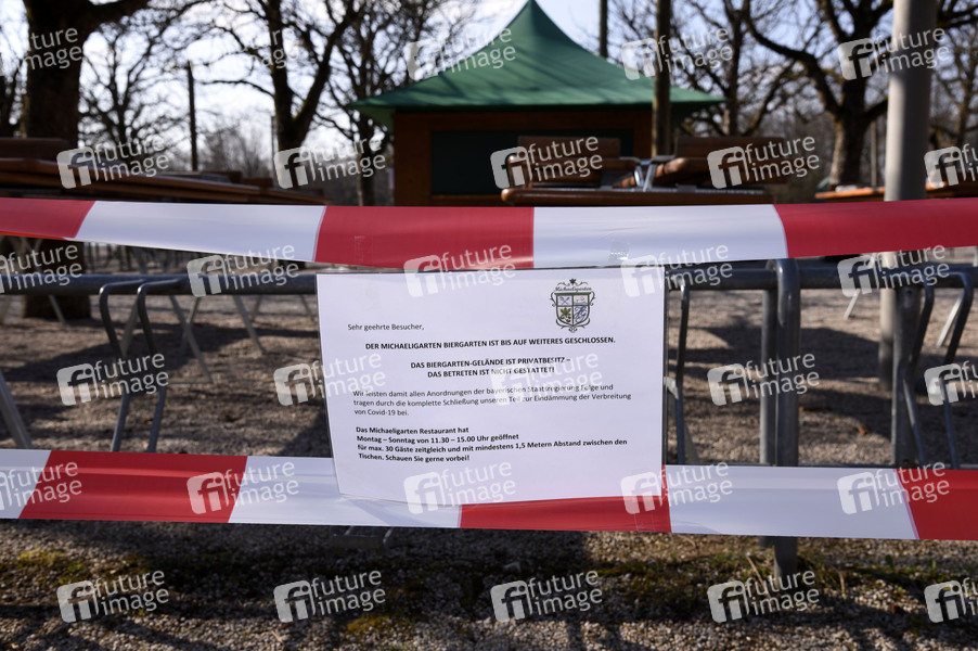 Schließung des Biergartens und des Spielplatzes im Michaeligarten. Nach zuletzt beschlossenen Schutzmaßnahmen gegen die Ausbreitung des Corona-Virus kommt das öffentliche Leben in München nahezu zum Erliegen. Betroffen sind fast alle Sehenswürdigkeiten, Museen, Plätze, Strassen, Restaurants, Biergärten, Universitäten u.v.m. München, 18.03.2020