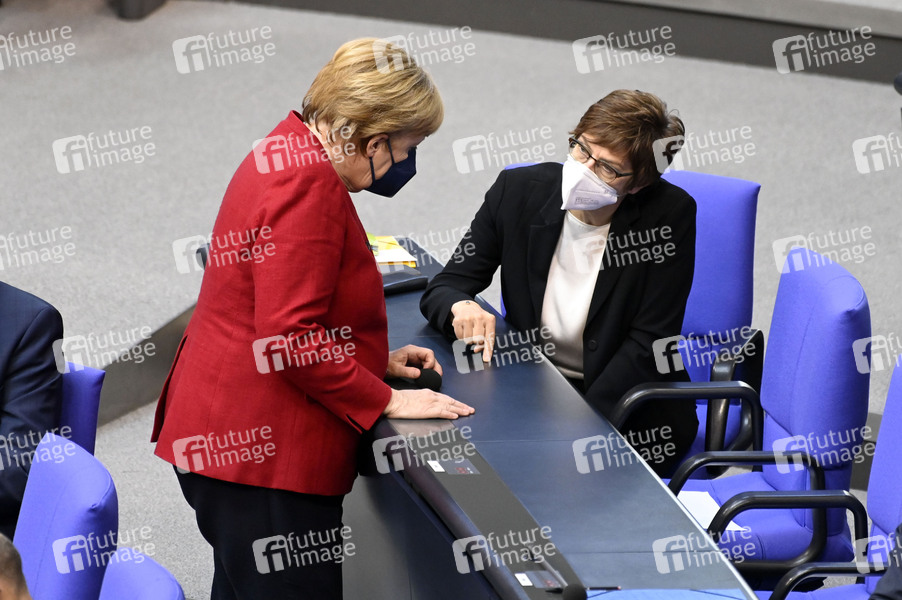 Angela Merkel und Annegret Kramp-Karrenbauer in der 238. Sitzung des Deutschen Bundestages im Reichstagsgebäude. Berlin, 25.08.2021